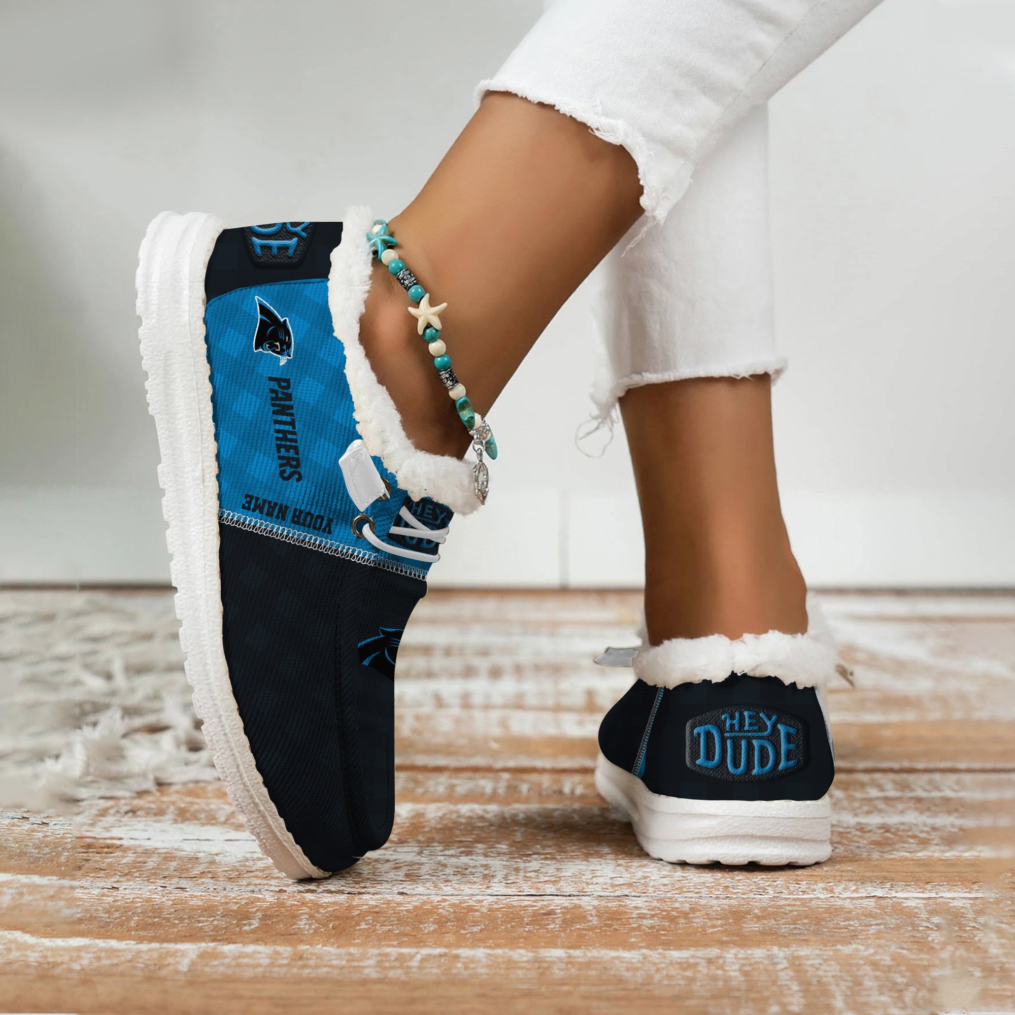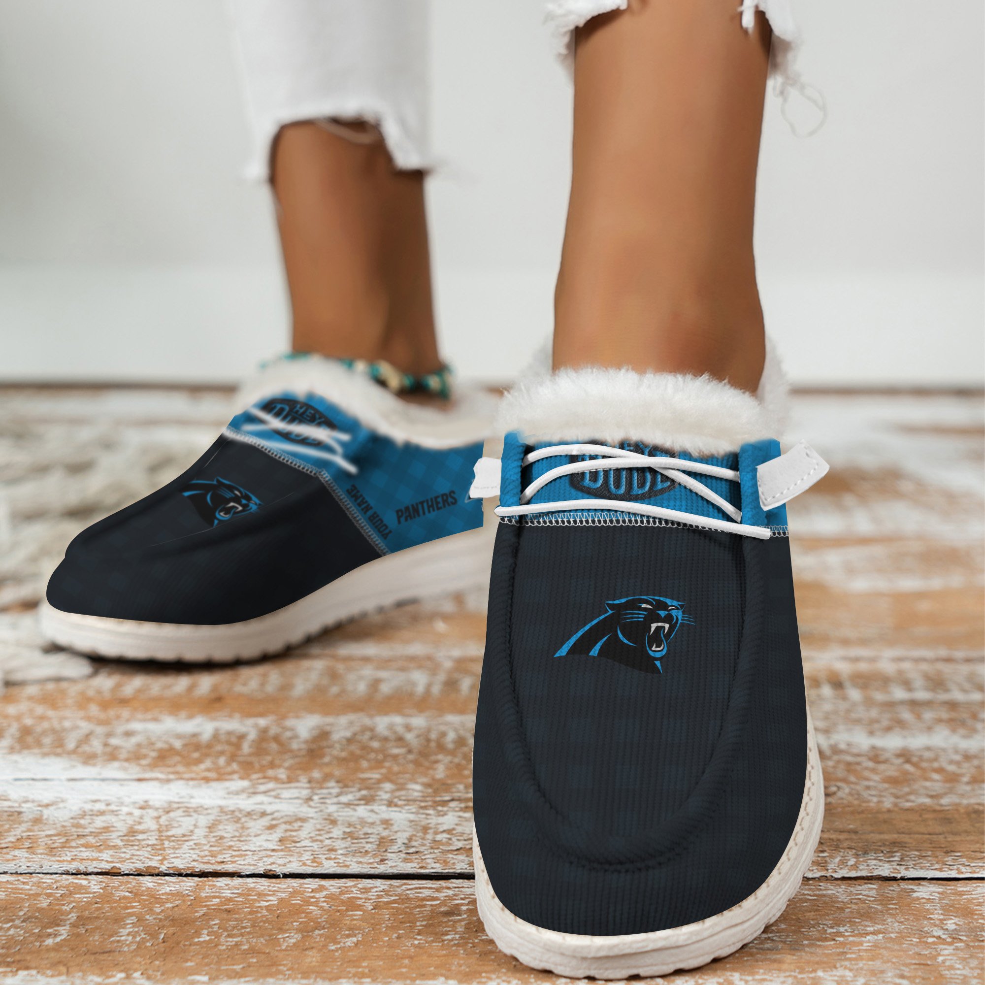 Carolina Panthers Personalized Hey Dude With Warm Fur Lining Shoes For Men And Women