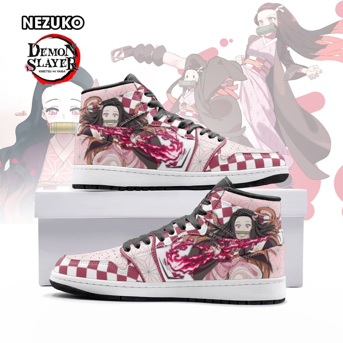 Nezuko Demon Slayer AJ1 High Sneakers Shoes For Men And Women