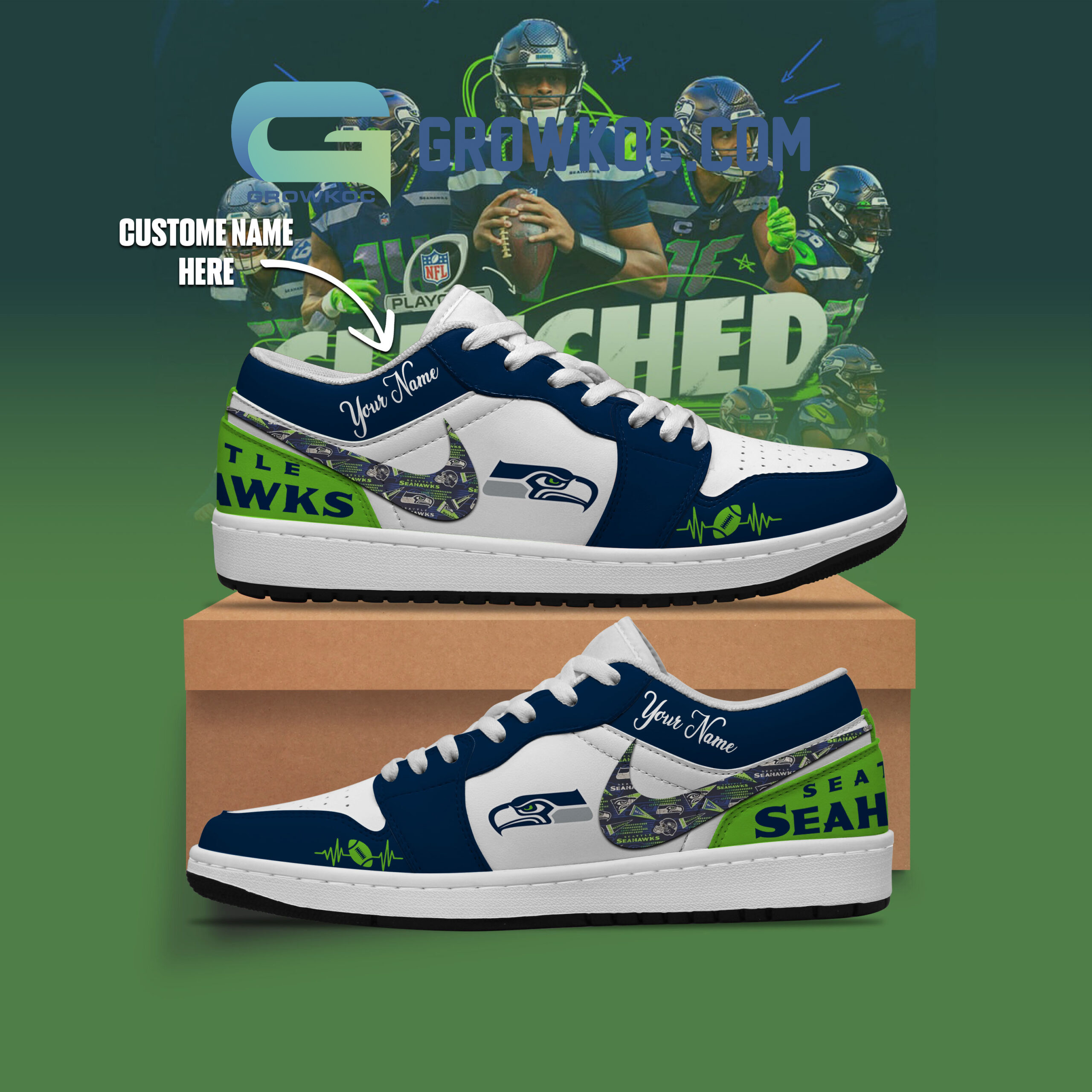 Seattle Seahawks AJ1 Low Sneakers Shoes For Men And Women